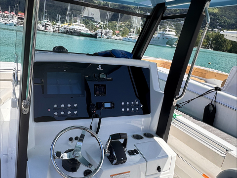 Its broad stance makes it easy to walk around both sides of the center console, while strategically positioned controls offer a 360-degree line of sight for the captain.