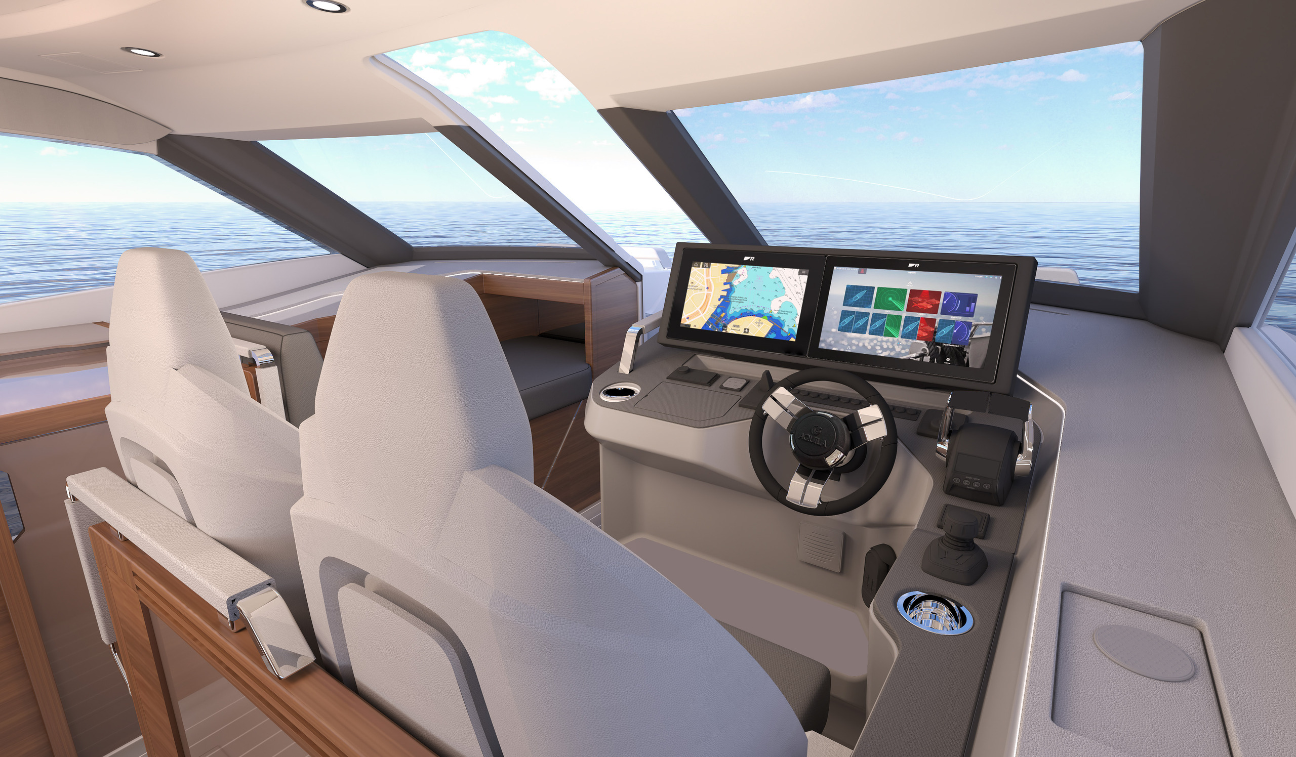 The innovative carbon fiber Aquila Hydro Glide® foil system that sets Aquila apart ensures your ride is smooth and efficient, whether powered by twin Mercury outboards or Volvo Penta inboards. From hidden coves to coastal towns, from afternoon cruises to weekend getaways, the 42 Coupe transforms every journey.